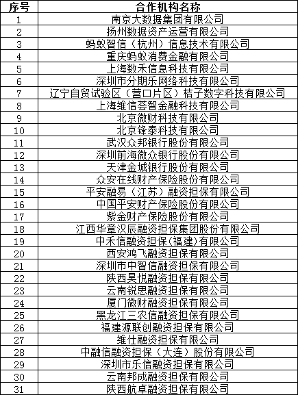 您好!根据国家监管部门相关规定,应当对互联网贷款业务平台运营机构、增信服务机构实行名单制管理,通过官方网站、移动互联网应用程序等渠道披露名单。现将我行互联网贷款业务合作机构名单予以公示,本次公示名单如下: